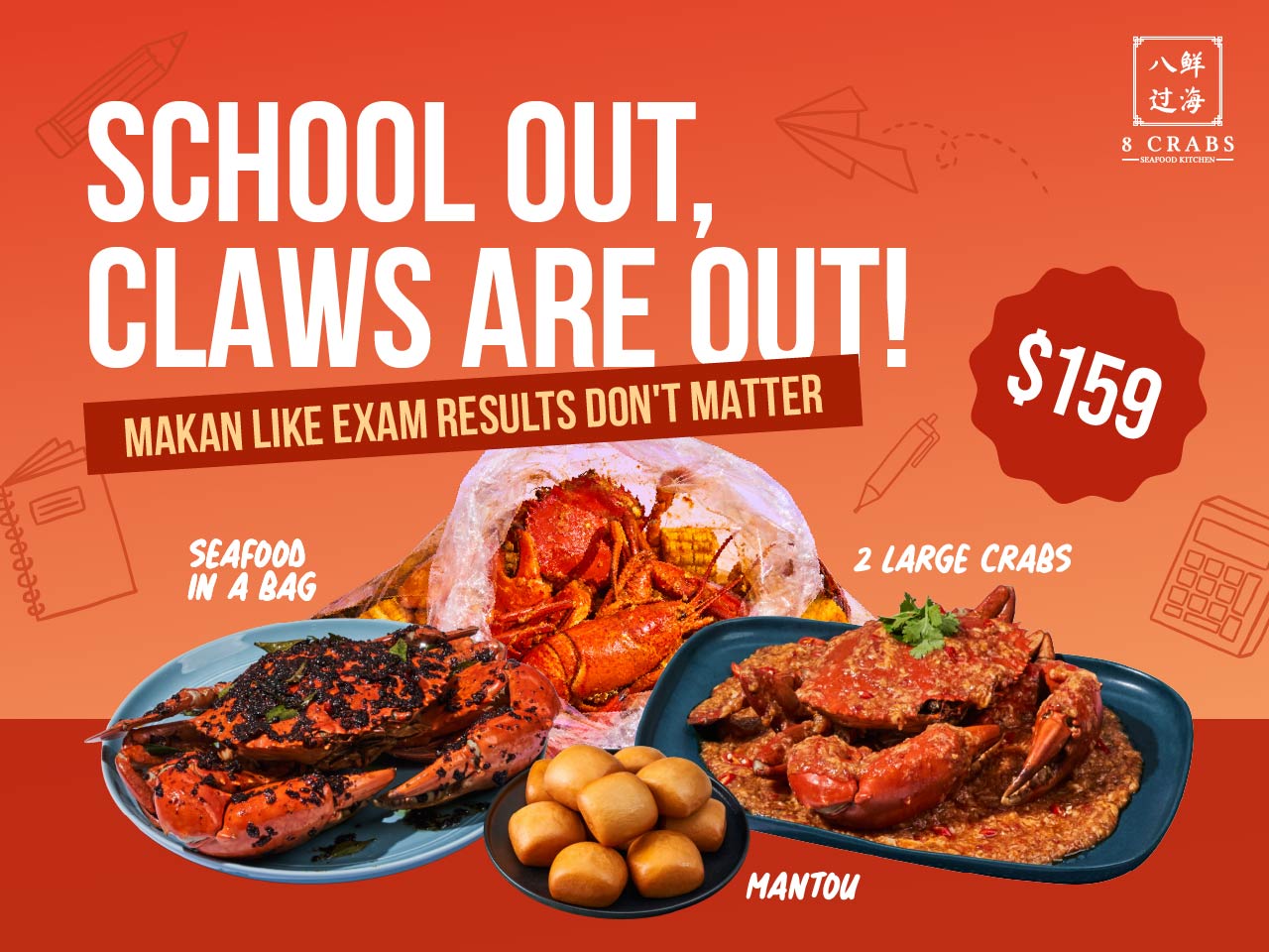 8 Crabs specialises in express delivery of cooked crabs and local Chinese cuisine. Our signature dishes are our Chilli Crabs, Black Pepper Crabs, and Salted Egg Crabs.