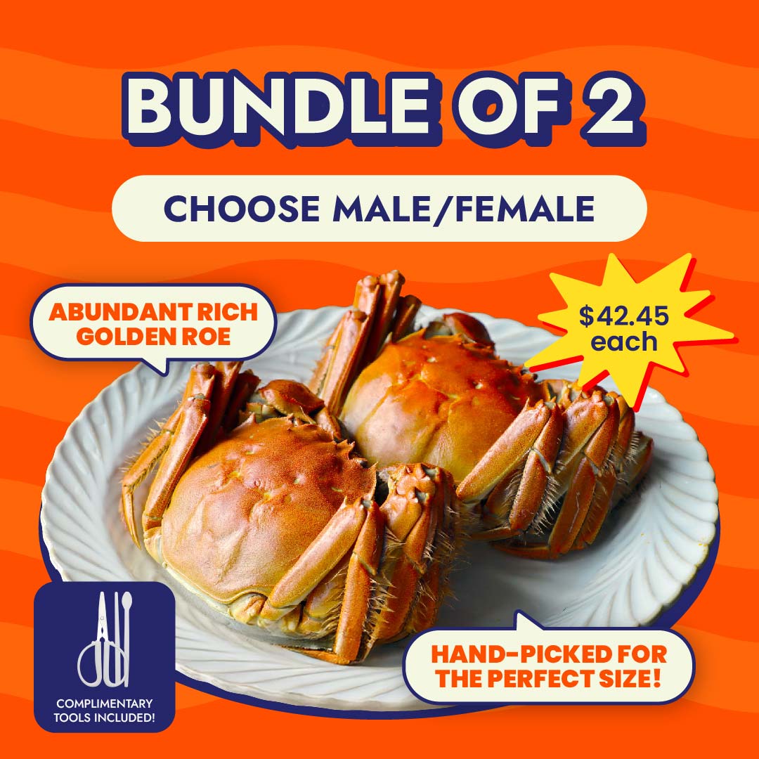 Autumn (end September) is usually the time in which they breed, and hence, you can expect each Hairy Crab to provide a great amount of roe and milt. All Hairy Crabs are caught in the Yang Cheng Lake and shipped to us live, before we prepare them steamed, and deliver them to you in the comfort of your home. Save the most when you purchase our most sought after Bundle of 8!